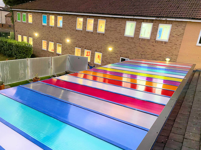 The staff at Priory Hurworth House School have brightened up their outdoor setting with a brand-new canopy featuring a multi-coloured polycarbonate roof and we think it looks fantastic!