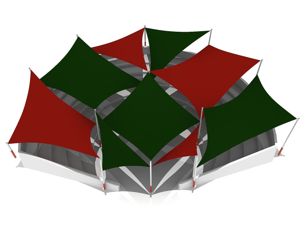 The design needed to allow for suitable positioning to obtain the maximum coverage from the sun but allow for adequate lighting to provide a pleasant ‘outdoor’ visitor experience. The size and shape of the Ampitheatre presented a challenge as the gradient of the walled garden varied considerably with the upper perimeter wall around the amphitheatre arena at a substantially higher level therefore requiring shorter supporting poles, while the pavior base level required taller poles. The council required the design to be able to adapt to this change in levels whilst also enhancing the amphitheatre’s general look and feel.