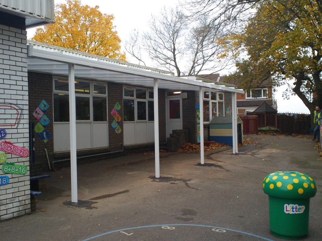 We installed a 10.8m x 3.75m Coniston Wall Mounted Canopy in November 2013 to provide the school’s with a constant shaded and sheltered area which allows the pupils to play outdoors all year round.