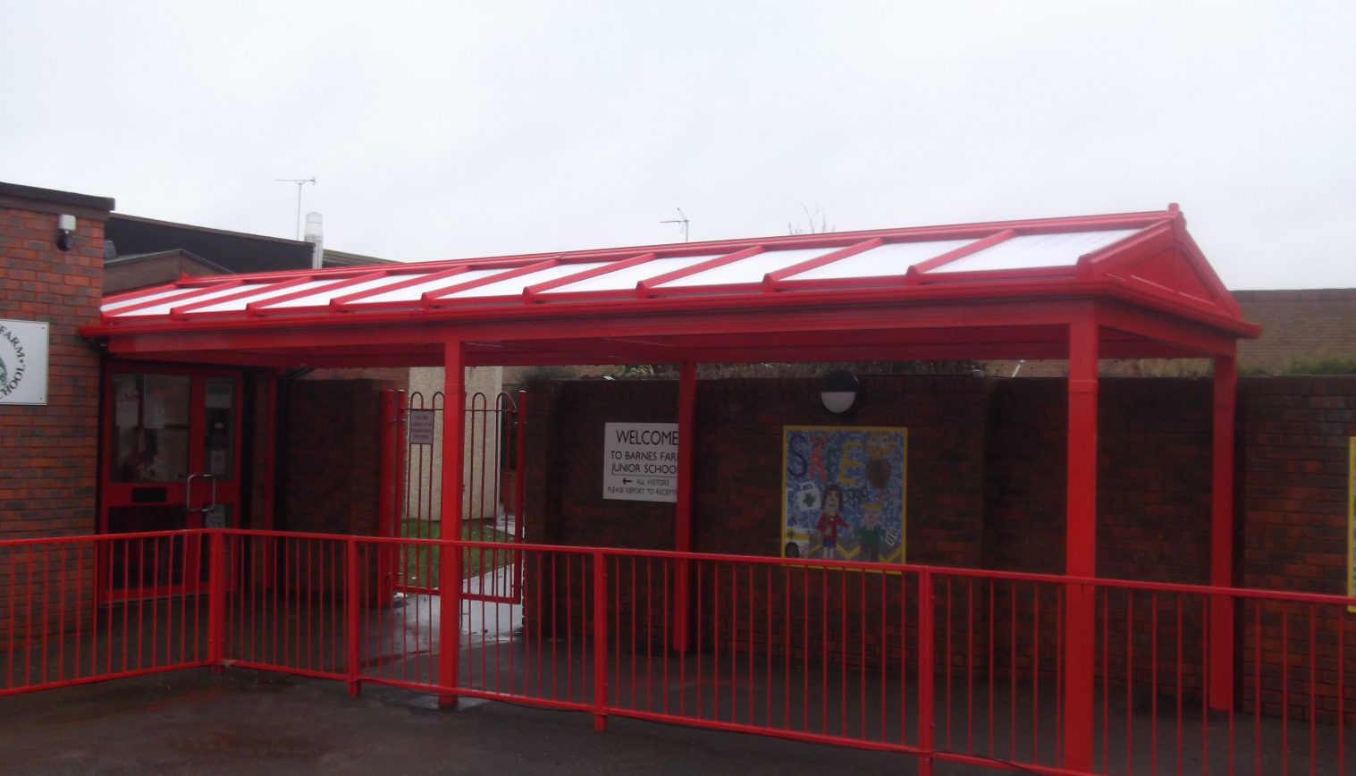 Barnes Farm Junior School wanted an entrance canopy that would shelter the teachers and pupils from the weather whilst looking attractive and fitting in with their existing surroundings.