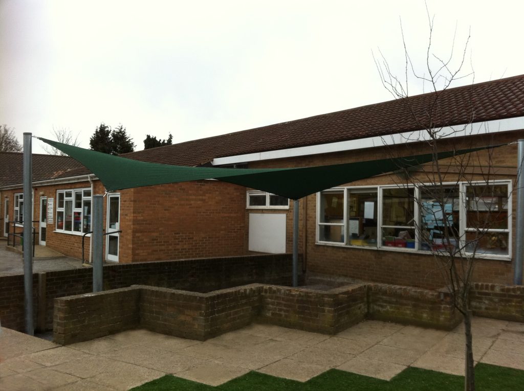 One of our fitting teams installed a 6m x 6m x 6m x 3m Square Shade Sail in green at Barrington Primary School, Kent. This created a shaded area to the school’s playground and as the sail blocks up to 98.8% of the UV rays it also helps protect against sunburn.