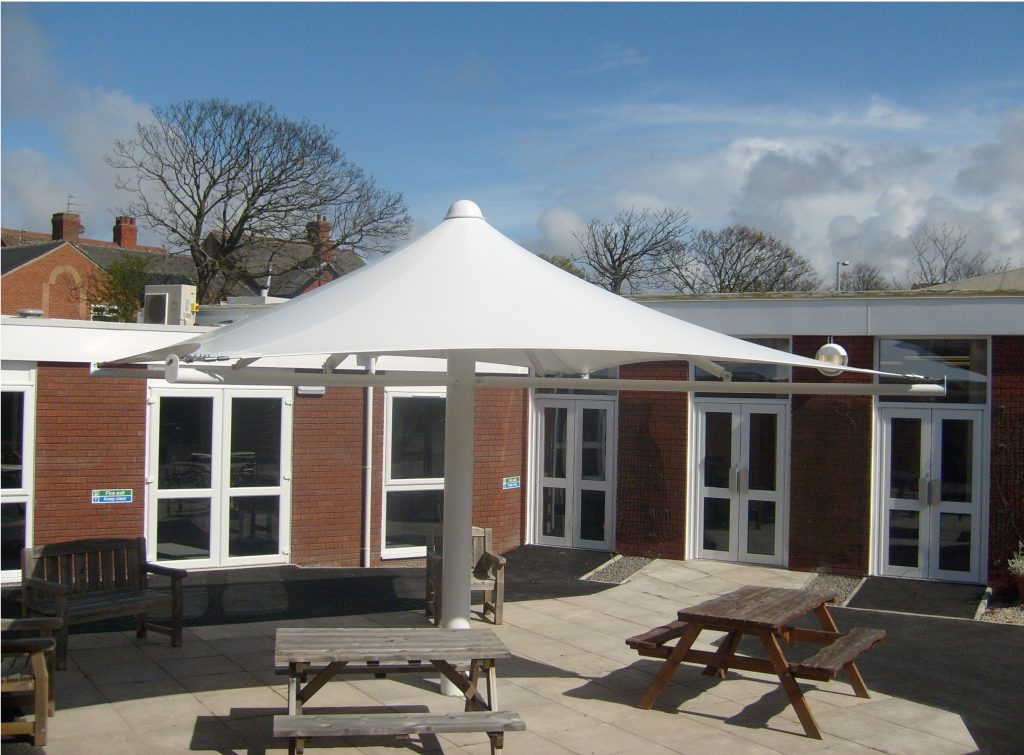 To meet the requirements, In March 2012 we installed a 5m x 5m Ulverston Umbrella leaving the contractors very satisfied with the finished project and giving staff and visitors a pleasant all-weather outdoor area where they can enjoy the surrounding and fresh air, even on rainy days.