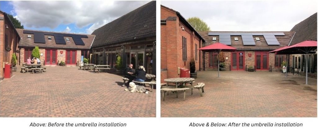 The installation went ahead smoothly without any problems and the staff from both Leicestershire Traded Services and Bosworth Battlefield are delighted with their new umbrellas.