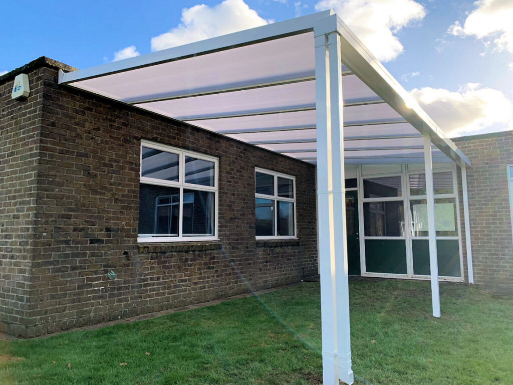 In November 2023, we supplied and installed a 7m x 3.5m Coniston Wall Mounted Canopy at Broadfield Primary Academy in Crawley, West Sussex.