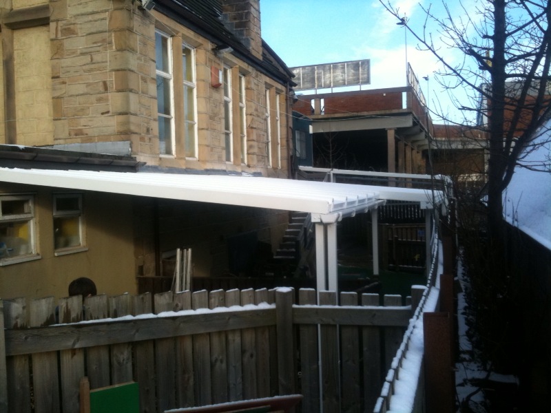 Our installation team installed a 5m x 3m Coniston Wall Mounted Canopy at Child’s Play Day Nursery, creating an area that the children can use for outdoor play and also outdoor learning. The Coniston protected the children from the sun’s UV rays and creates shelter from the rain and snow.