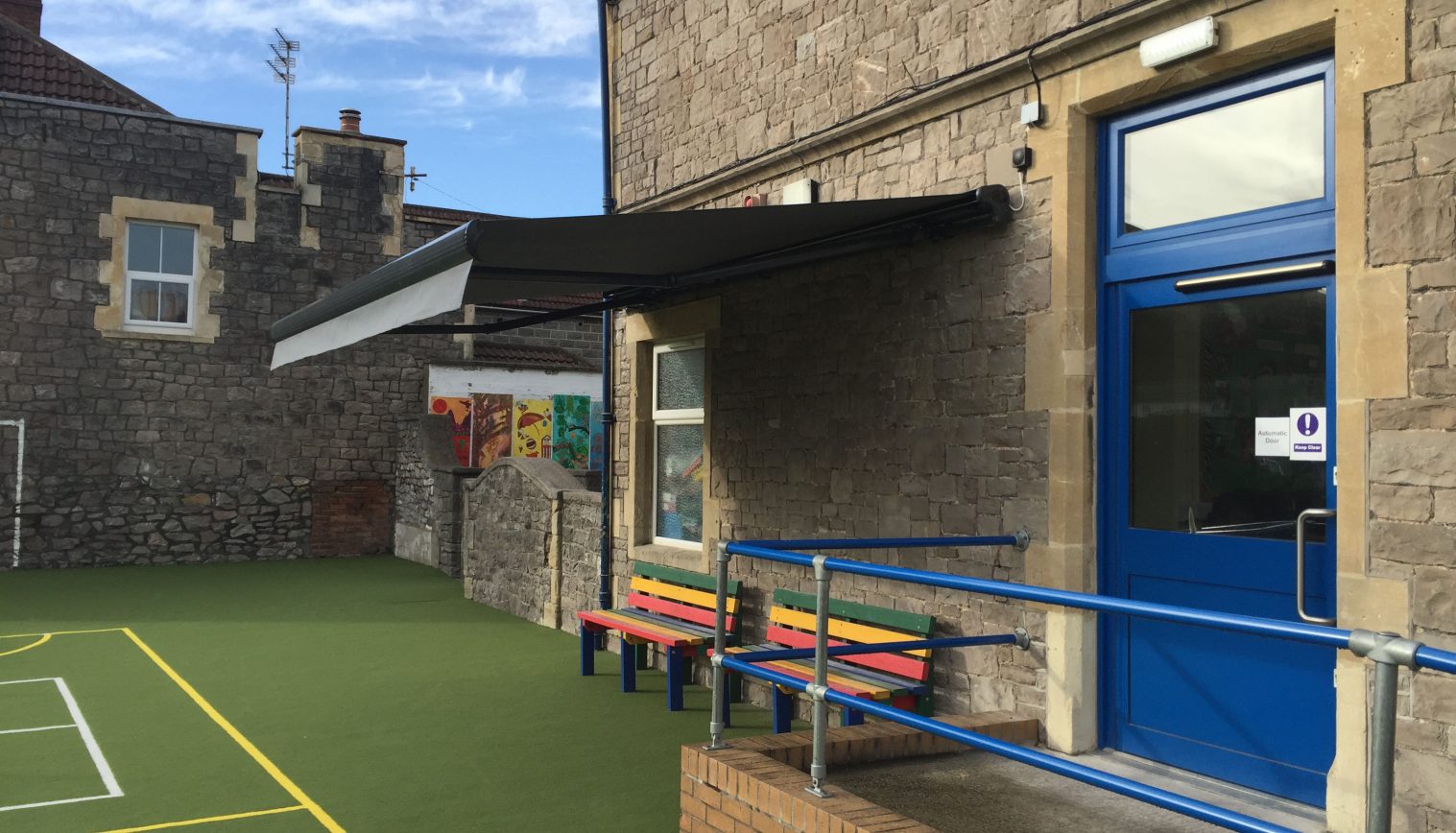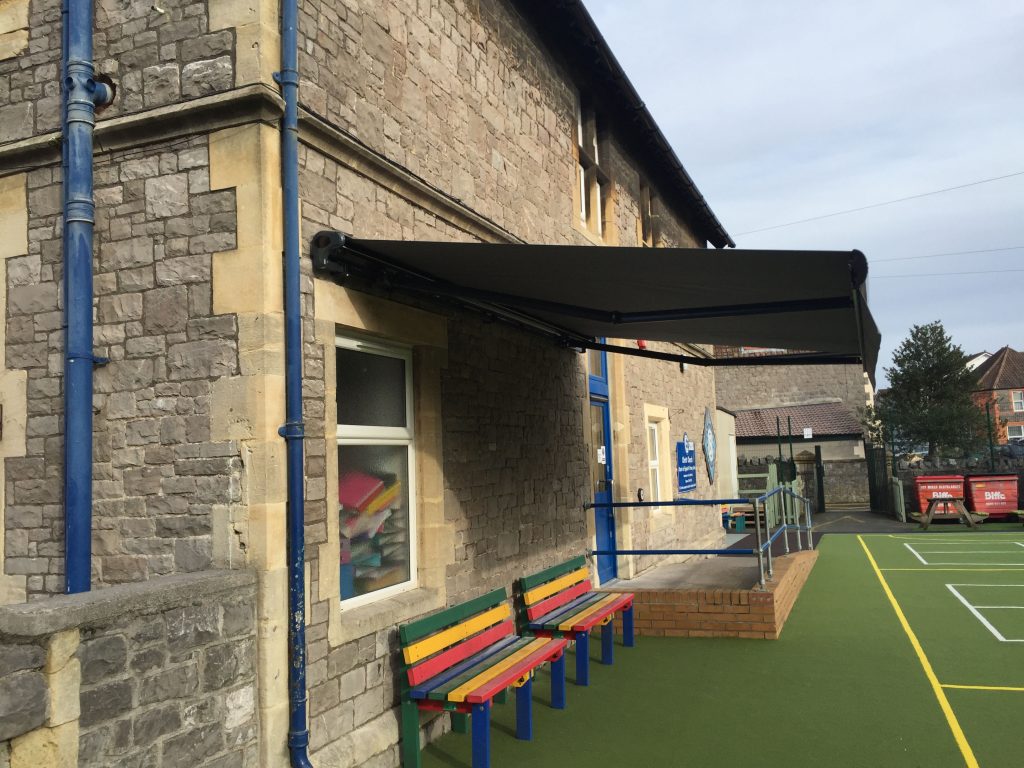 We supplied and installed a 4.5m x 2.5m Palladio Awning at Christ Church CE VA Primary School in Weston-super-Mare on behalf of The Hookway Partnership Ltd.