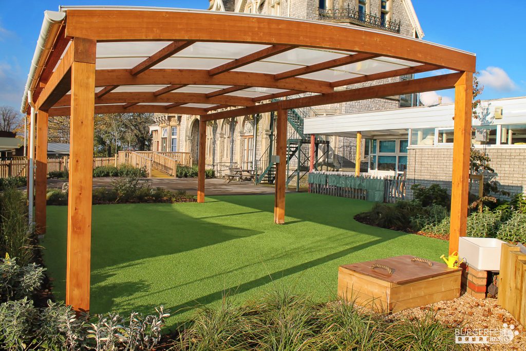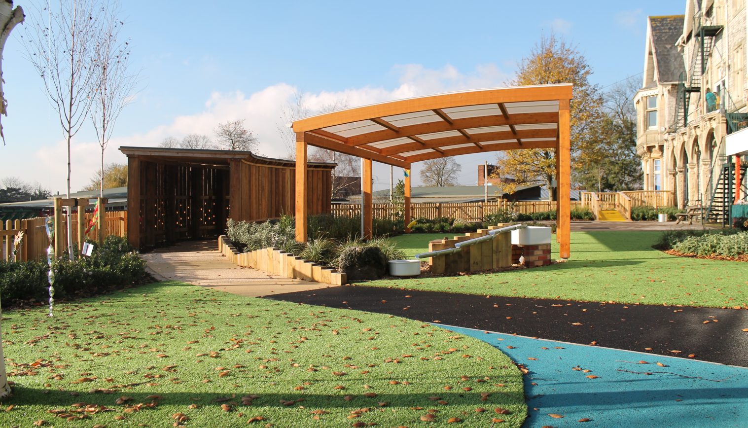 Afla Chartered Landscape Architects were creating an outside sensory garden for the pupils of Claremont Special School. Part of the project included a timber shade and rain canopy to enable pupils to use the garden all year round.