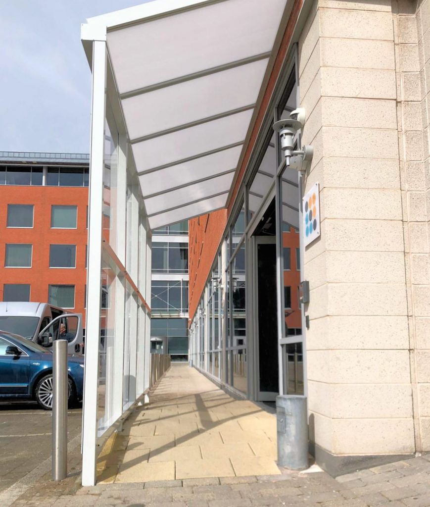 In March 2020, we supplied and installed a 6m x 1.7m Coniston Wall Mounted Canopy at a commercial property on Liverprools waterfront. The canopy features a clear polycarbonate front panel to enclose the entance of the building, blocking driving wind and rain from entering the building.