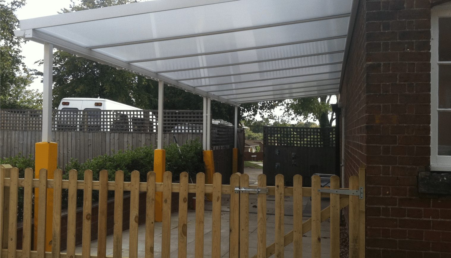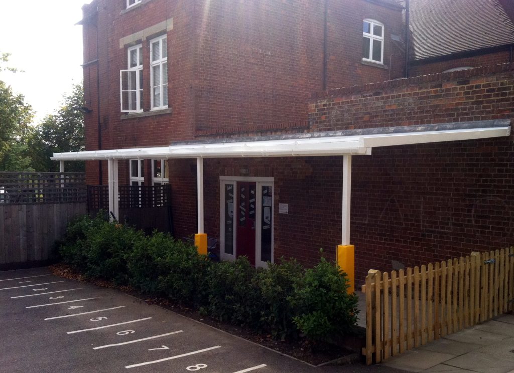 One of our fitting teams installed a 10m x 3.5m Coniston Wall Mounted Canopy at Dame Bradbury’s School. This created a covered area outside of one of the classrooms. The Coniston blocks up to 99% of UV rays allowing the pupils to play under the canopy whatever the weather, without having to worry about the damaging effects of long term sun exposure.