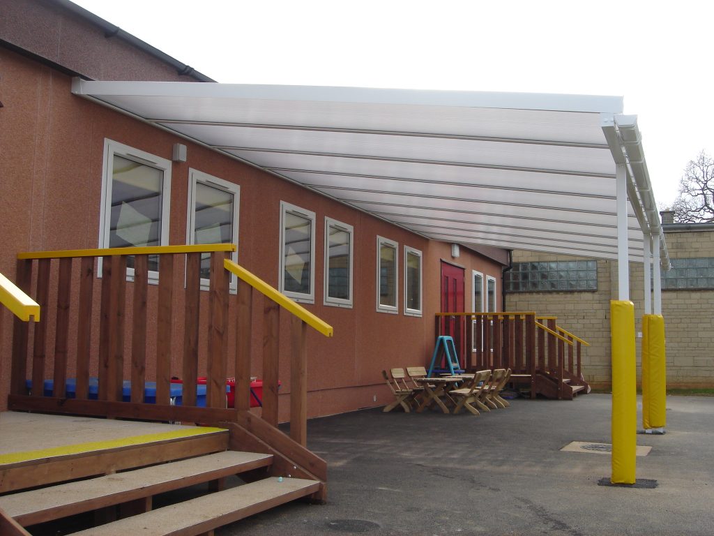 We installed a 9m x 4m Coniston Wall Mounted Canopy at Deddington C of E Primary School creating an area to the school which will allow the pupils to play outside for a long period time when under the canopy because of the protection that the Coniston offers.