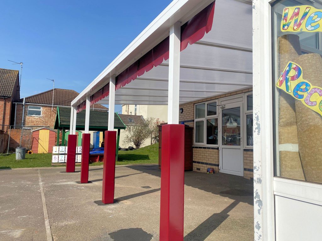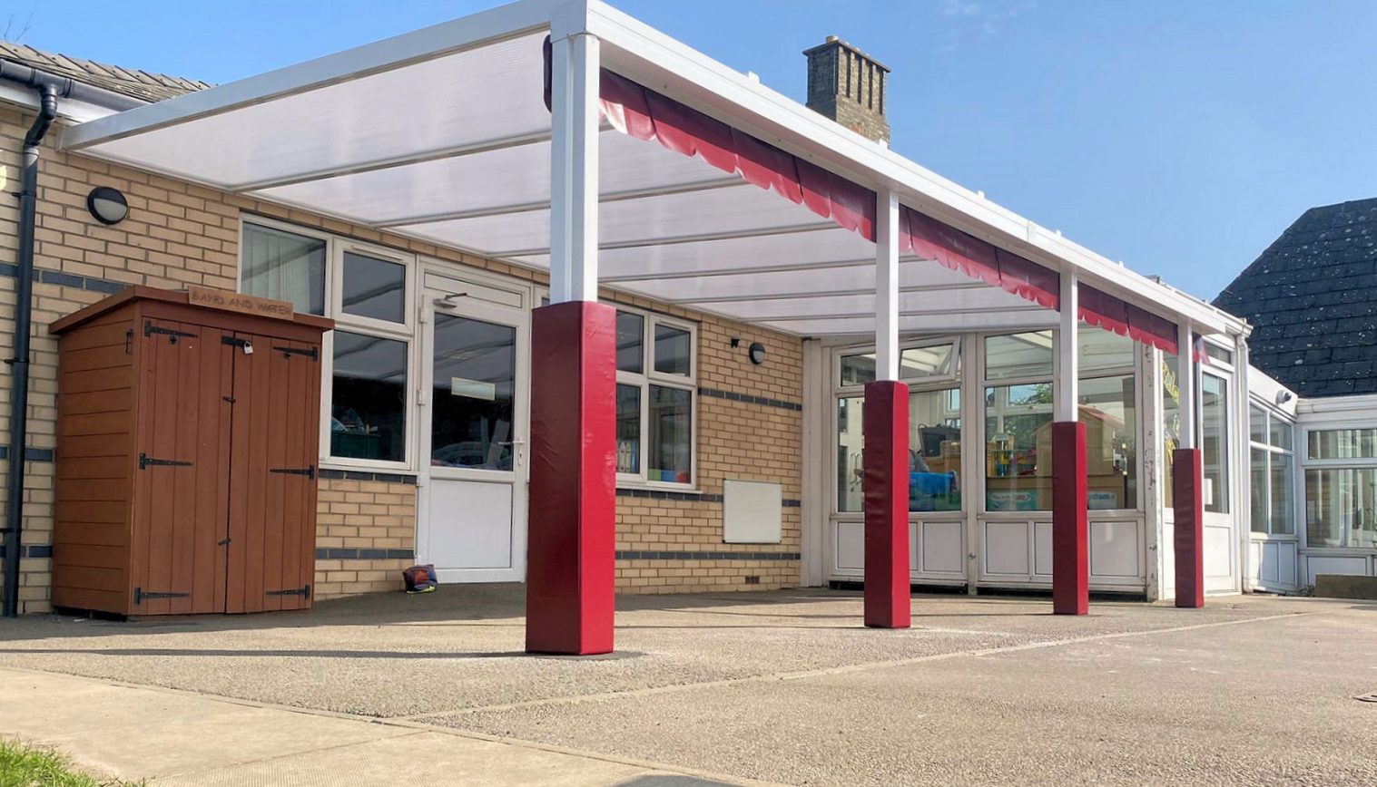 Elm Road Primary School in Wisbech, Cambridgeshire were looking to have an existing old wooden canopy removed from their reception area and replaced with a new updated structure.