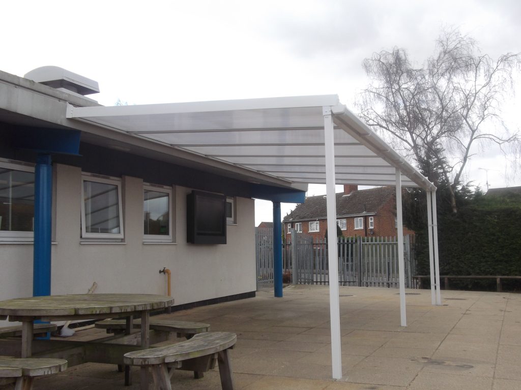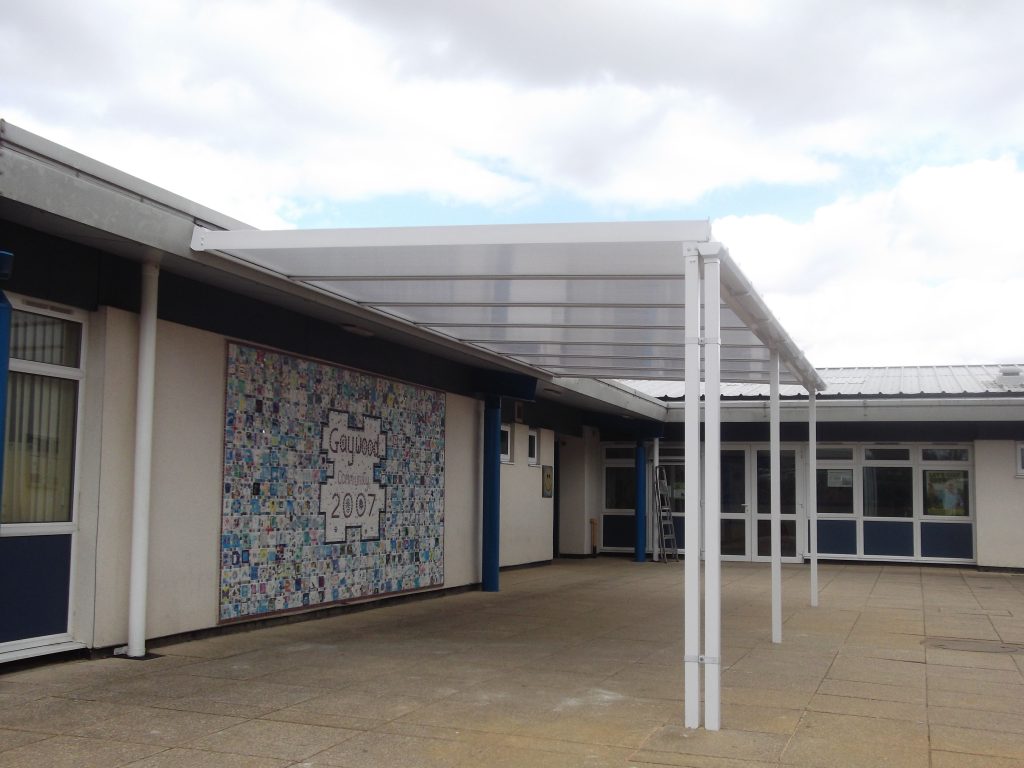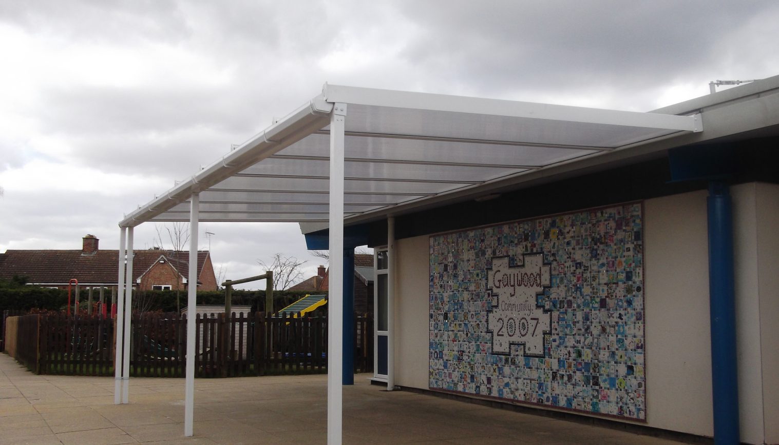 Back in 2011, we installed two 7m x 3m Coniston Wall Mounted Canopies and a 14m x 3m at Gaywood Primary School.