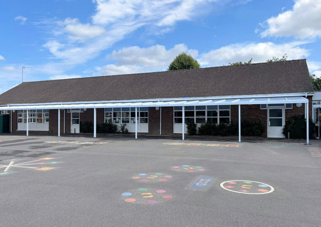In August 2024, we supplied and installed a 27.5m x 4m Coniston Wall Mounted Canopy at Green Lanes Primary School in Hatfield, Hertfordshire.