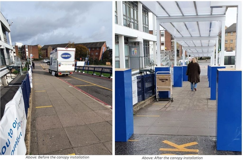 Hillingdon Hospital in Uxbridge, London were undergoing a refurbishment and required additional facilities to help keep their patients, staff and visitors dry and sheltered when arriving and leaving the hospital.