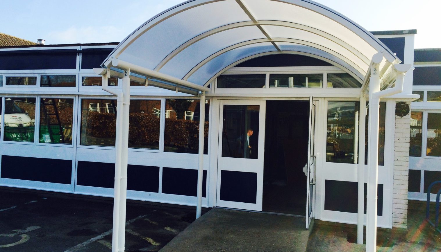 Fowler Building Contractors Ltd. who were the main contractors working on the project contacted us asking for a replacement canopy. We supplied and installed a 3m x 3m Whiteside Entrance Canopy in white to match the newly updated outside area.
