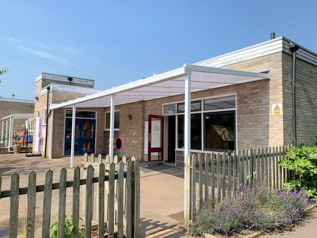 Kyson Primary School in Woodbridge, Suffolk had an old canopy from a different supplier which they were looking to replace. After discussing the different options available, we went on to install a 10m x 3.17m Coniston Wall Mounted Canopy in July 2021. The Coniston creates shelter from rain and snow and shade from the sun with high UV protection; it also helps to keep your building’s interior cool by shading windows.