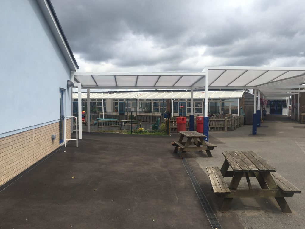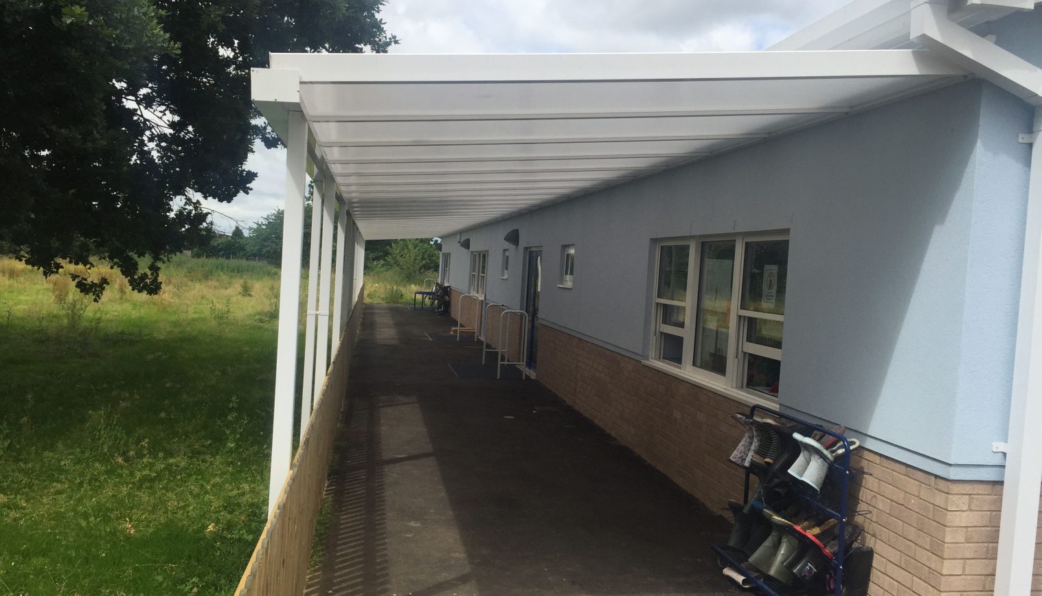 We installed two 31m x 3m Coniston Wall Mounted Canopies. One of these connecting to a 38m x 3m Grange Free Standing Walkway Canopy creating the cover that they wanted.