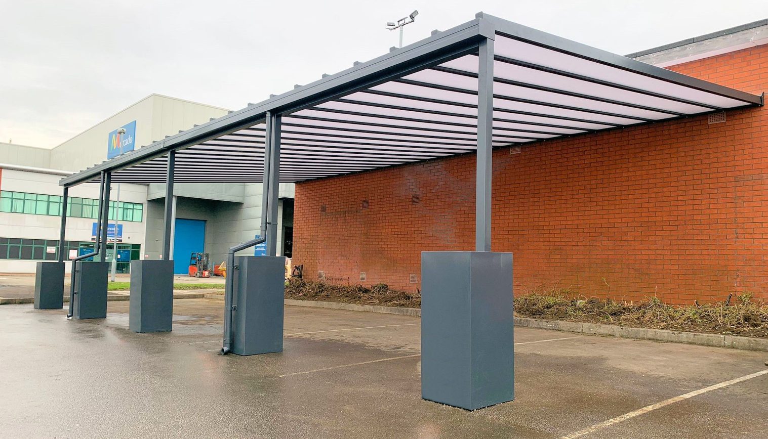 The canopy was installed to create a sheltered area to store materials underneath for customers that were click and collecting.