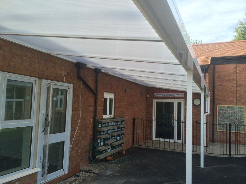 Our fitting team supplied and installed a 10.2m x 3m Coniston Wall Mounted Canopy at North Newbald Primary School in York. The canopy helps to create an outdoor area that can be used throughout the whole year for outdoor play and learning.