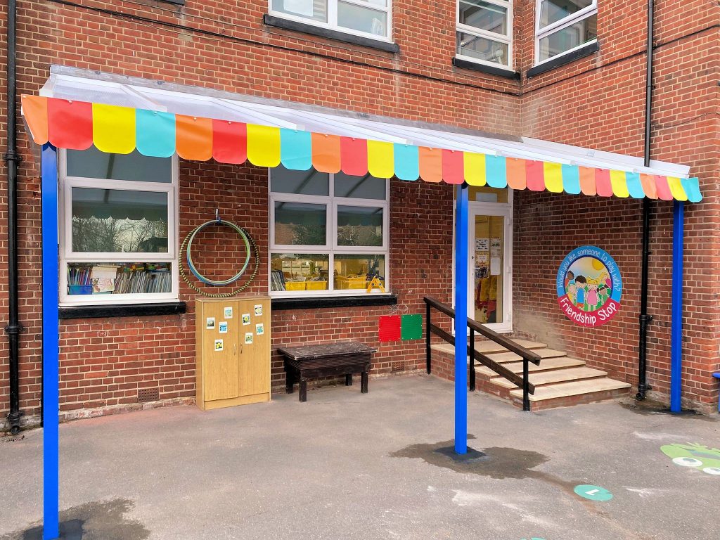 The school recently got back in contact with us looking for another wall mounted canopy similar to their current one to add more cover to their school. To meet the schools requirements, e installed a 6.7m x 3m Coniston Wall Mounted Canopy added the shade and shelter they needed.