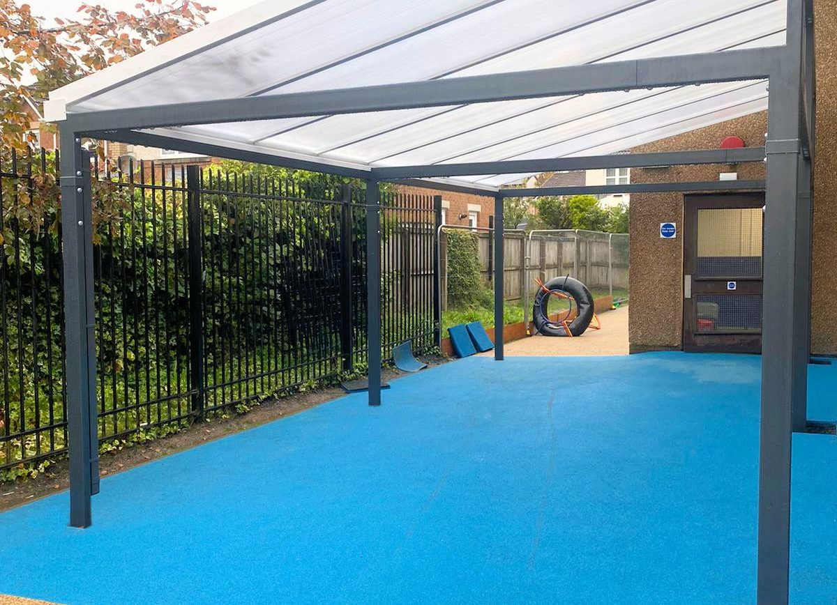 To meet the requirements, we installed two Grange Mono Pitch Free Standing Canopies. The canopies create permanent outdoor covered areas that will shelter students from the rain and shade them from the suns UV rays, allowing them to enjoy the outdoors in all types of weather.