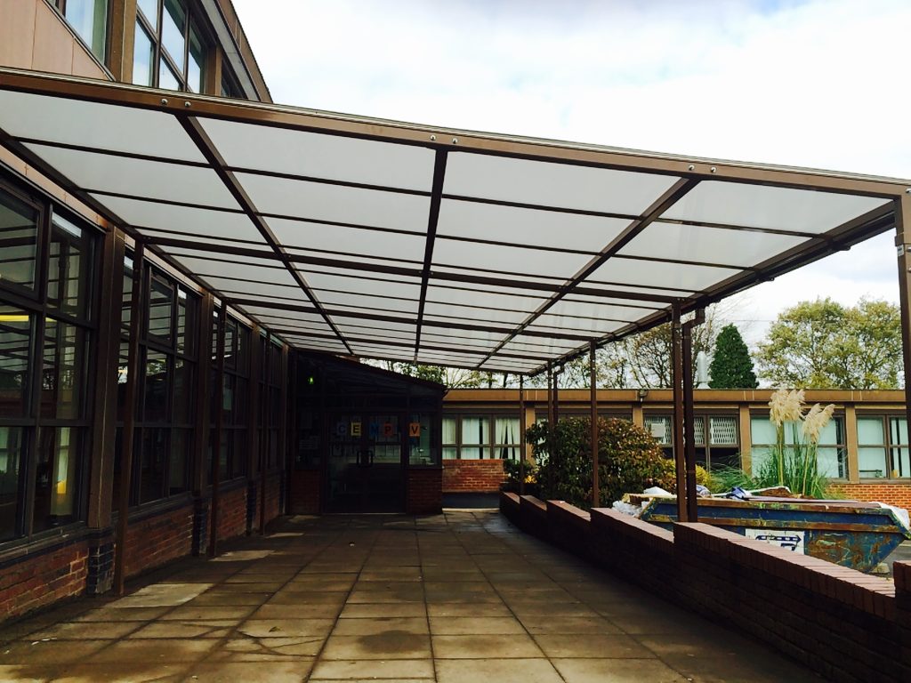 Perryfields High School were in need of a free standing canopy in their school grounds to provide shelter to their students whilst queuing the for the school dining room.