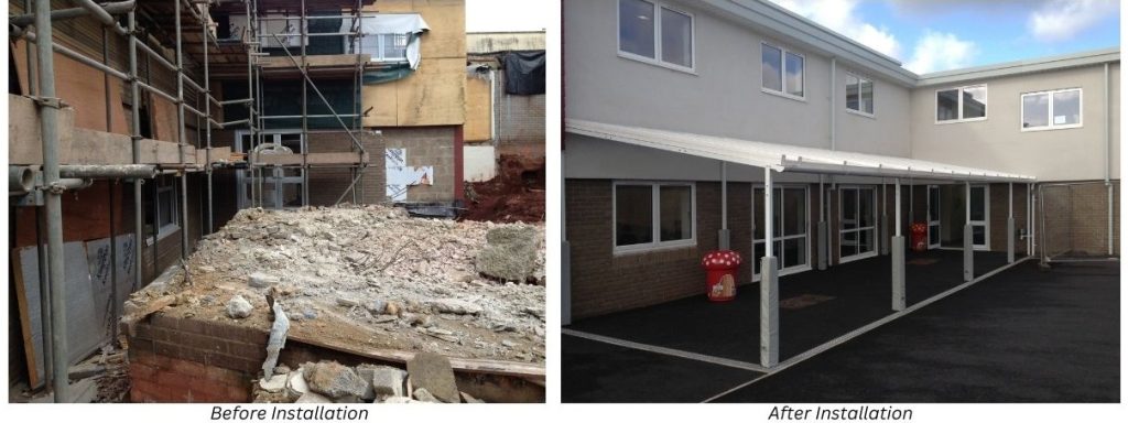 Preston Primary School required cover for their outdoor play area so that their pupils could play outside in all weather conditions at their school in Devon. The school liked the appearance and practicality of the Coniston Wall Mounted Canopy, yet due to the fact that they did not want to fix a canopy to their existing building, they requested information on the free standing canopies available. They also had a fixed budget and therefore required a canopy that would fit into their budget without compromising on quality and size.