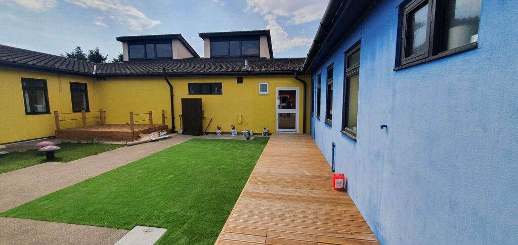 Unless otherwise stated, foundations are included in all our canopy quotations. The flooring in at Rush Green Primary School featured raised decking, so we needed to investigate the area underneath the decking to check it was suitable for our foundations and they were.