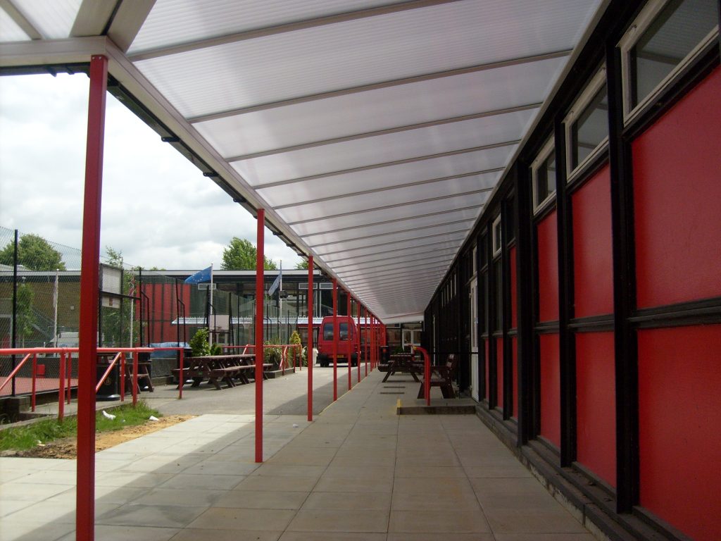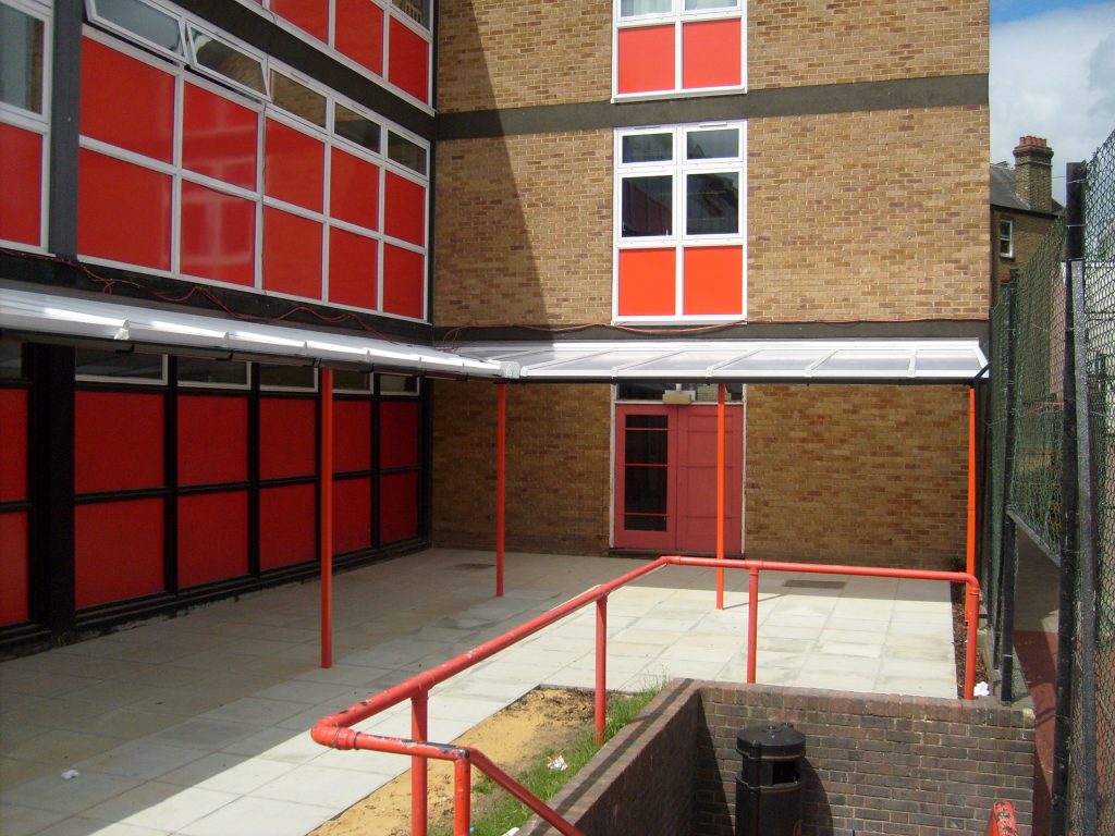 2 No. Wall Mounted Canopies and 1 No. Free standing Walkway Installed in Southwark: