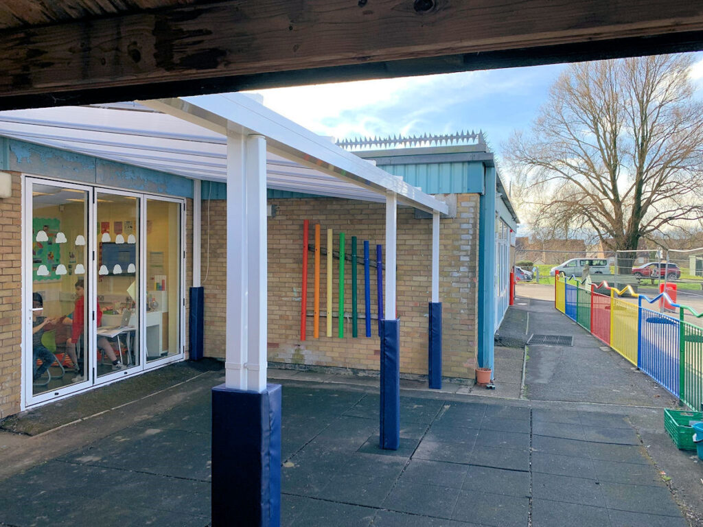We recommended an installation of a Coniston Freestanding Canopy as it would be the ideal solution. This canopy provides a weather-protected, sheltered space, facilitating comfortable access to the outdoors for students and staff in any season.