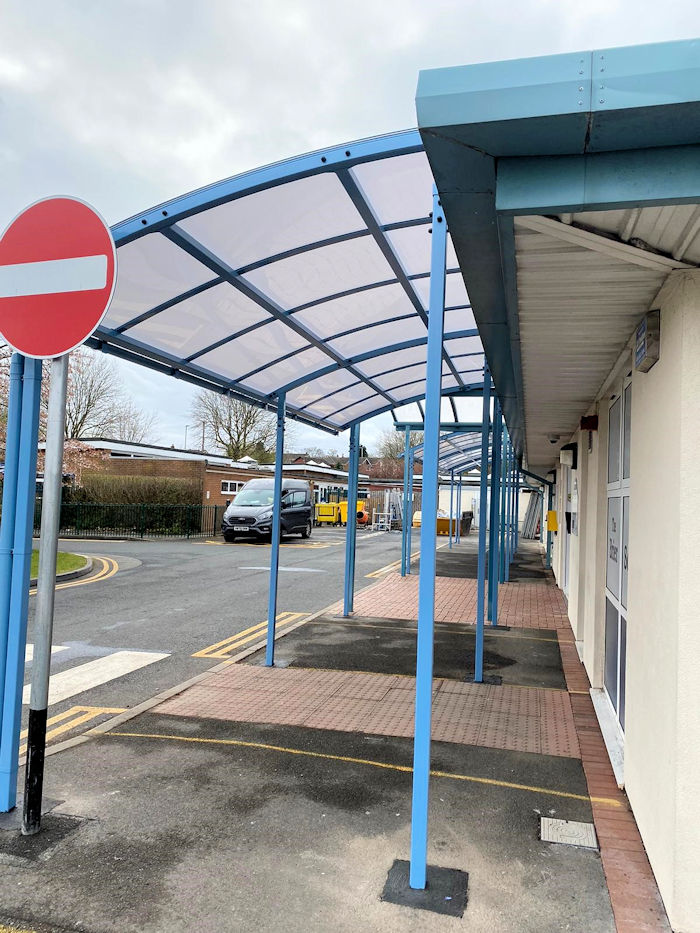 The Brier School, a previous customer contacted us as they were looking to extend their covered area at the entrance of the school, allowing more parents to wait under when collecting their children whilst being sheltered and shaded.