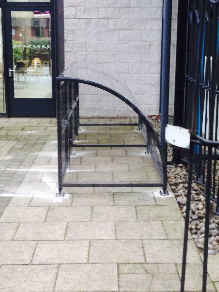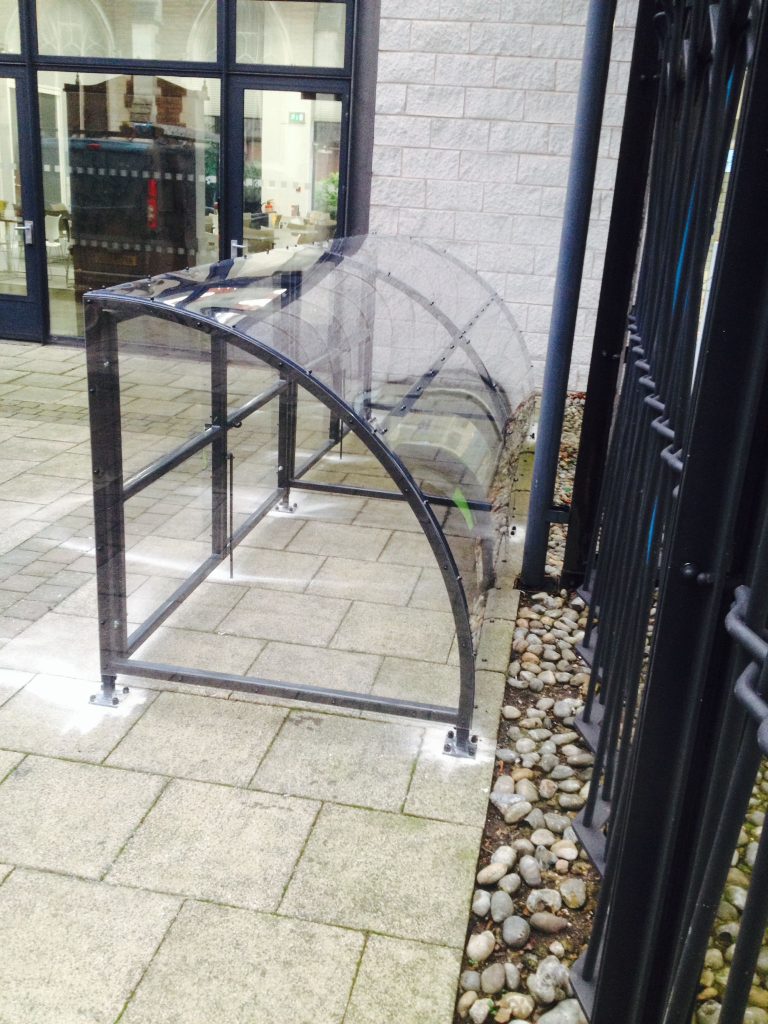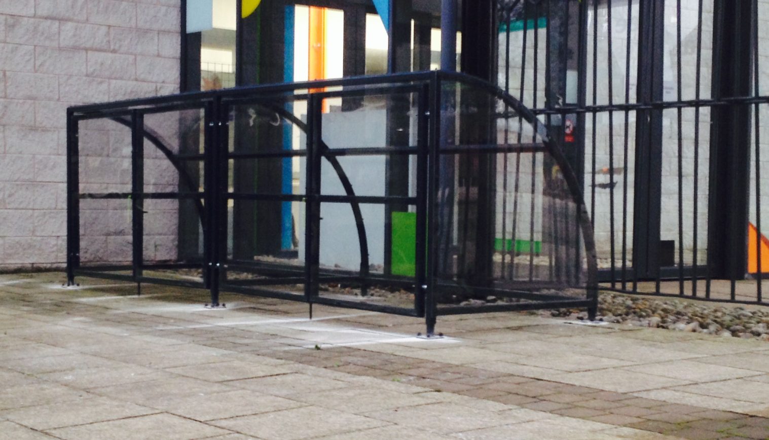 We installed a 4.2m x 1.2m Grey Double Meadley Buggy Box at Visual Arts Centre in December 2015. The Double Meadley Buggy Box can hold up to 4 buggies at one time keeping the buggies sheltered from rain.