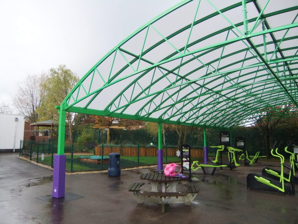 White Spire School is a special school for all ages in Milton Keynes, Buckinghamshire. They were looking to create a large covered area in their playground that they could use as an outside gym and keep permanent gym equipment underneath all year round.
