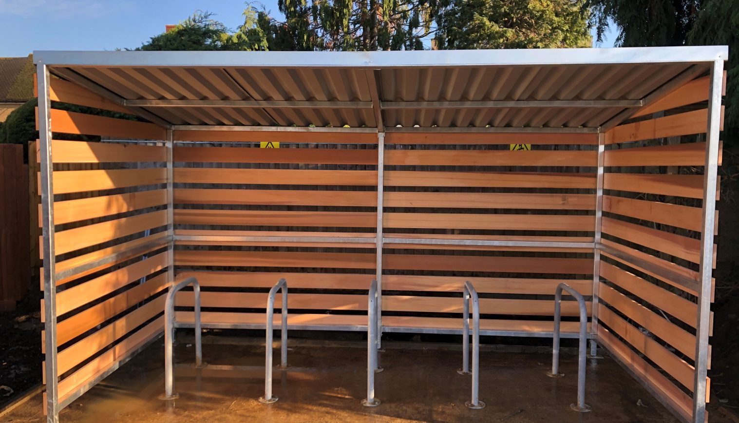 After discussing the different options we installed a 4.1m x 2.05m Grasmere Timber Clad Cycle Shelter which 5 double sided Sheffield cycle racks which allows up to ten bicycle to be securely locked up.