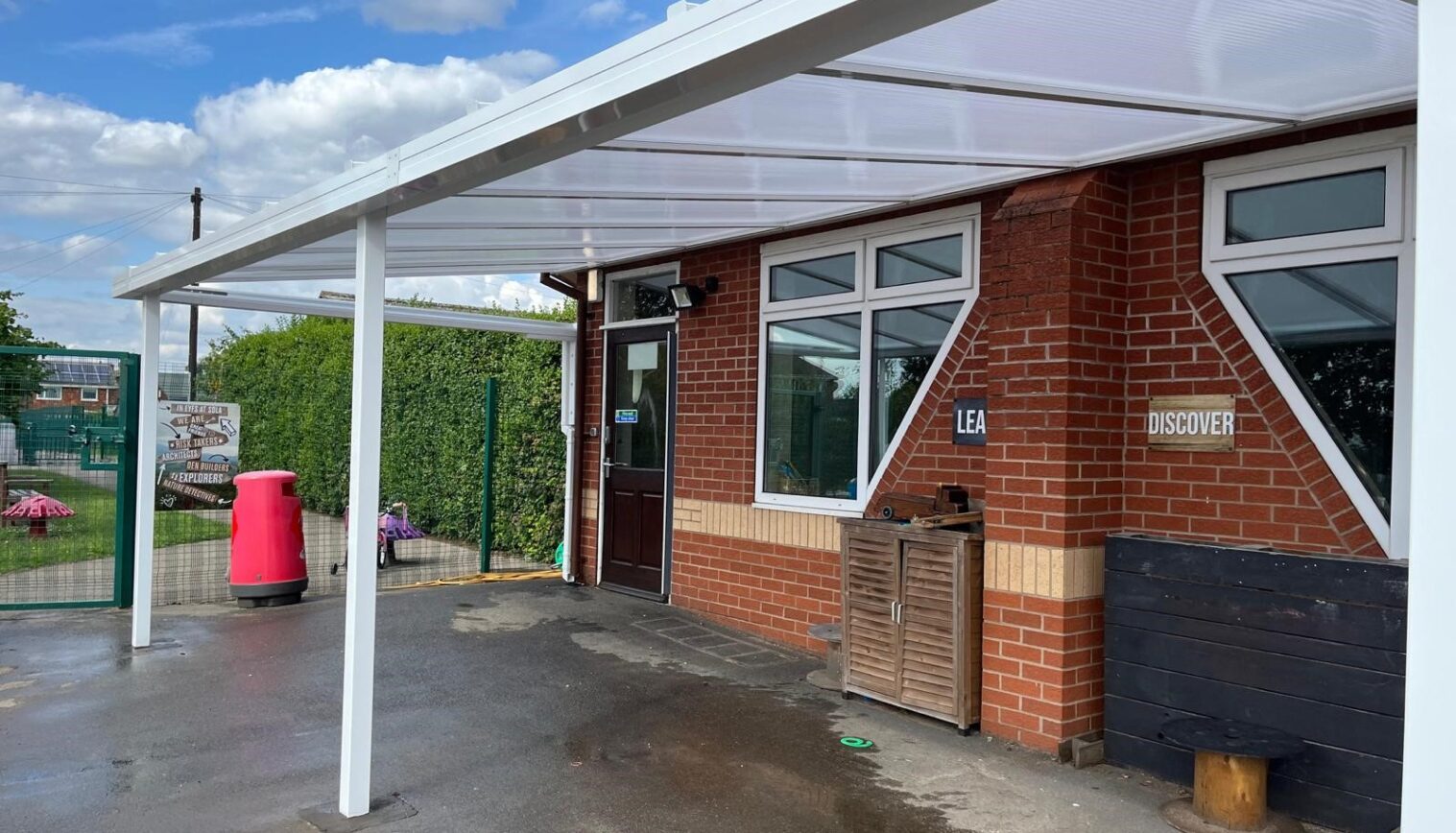 However, if I had to choose one that immediately stands out, it would be Sheep Dip Lane Academy in Doncaster, Yorkshire, Wall Mounted Canopies installs. The school first had an 8m x 3m Coniston Wall Mounted Canopy installed in July 2023, followed by an additional 3.50m x 2.20m Coniston Wall Mounted Canopy in September 2024.