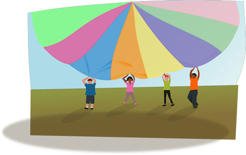 There are many ways you can create great activities outside to encourage teamwork and social skill development. Creating team games where the children solve a problem by working together, or playing the parachute game are excellent for encouraging teamwork.