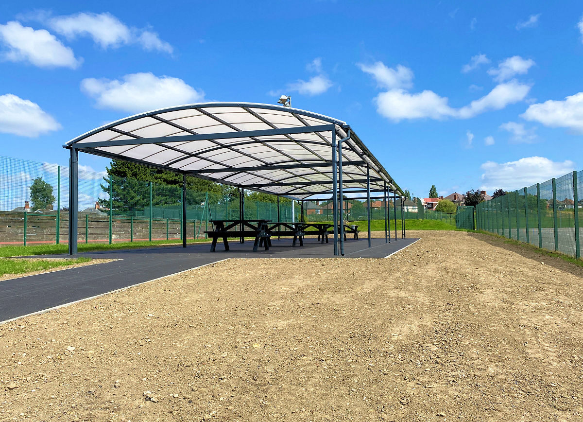 Frederick Gent School in Derbyshire were having a new outdoor dining area constructed and required a canopy so it could be used all year round and the Welford Dome was the perfect solution.