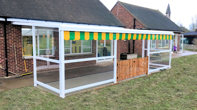 The Coniston can be used at any length and has a large projection, so the Coniston was the perfect solution and could easily provide the cover required for all the classrooms, at an affordable price.