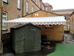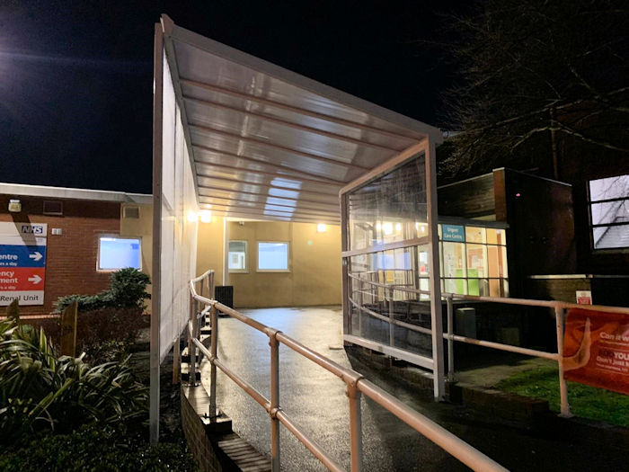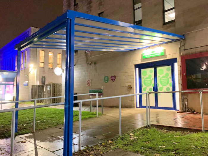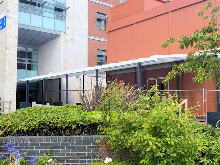 A Canopy For Small Outdoor Spaces To Keep Patients Dry Whilst Waiting For Their Appointments