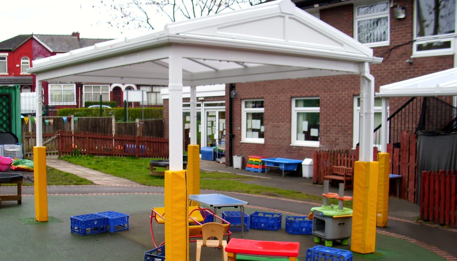 Manchester City Council contacted us behalf of Acorn Grove Nursery as they were looking to create two covered outdoor areas to their playground.
