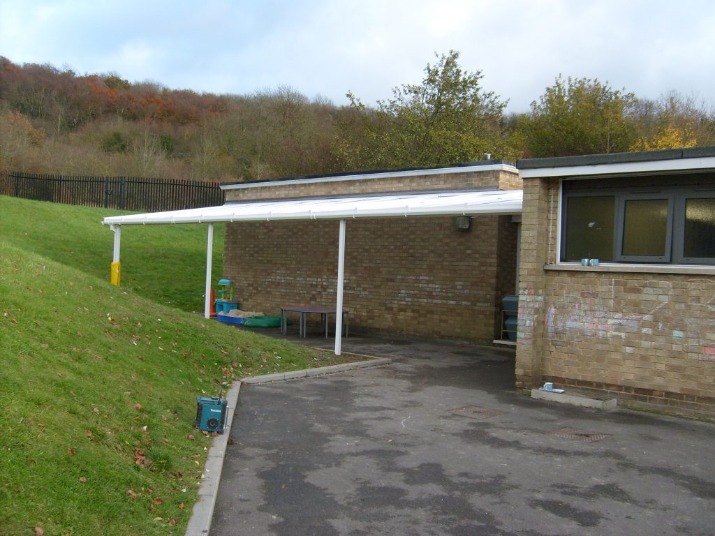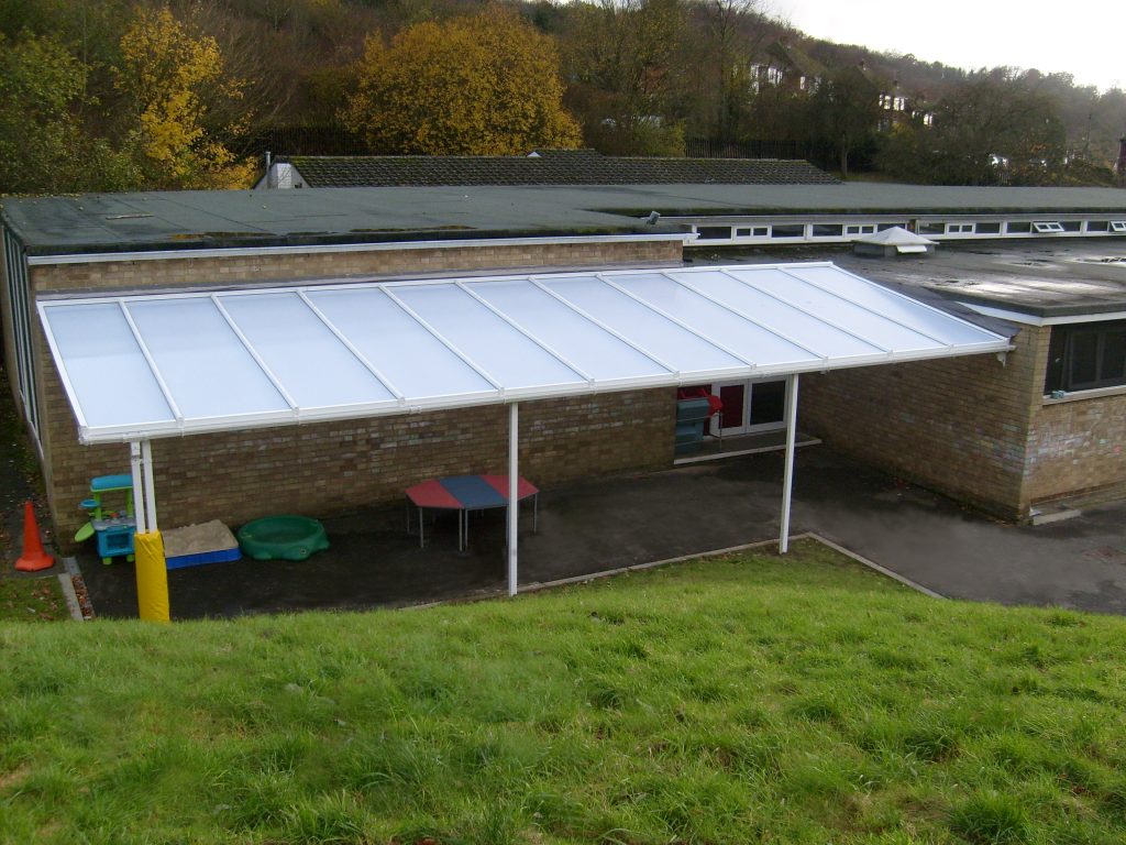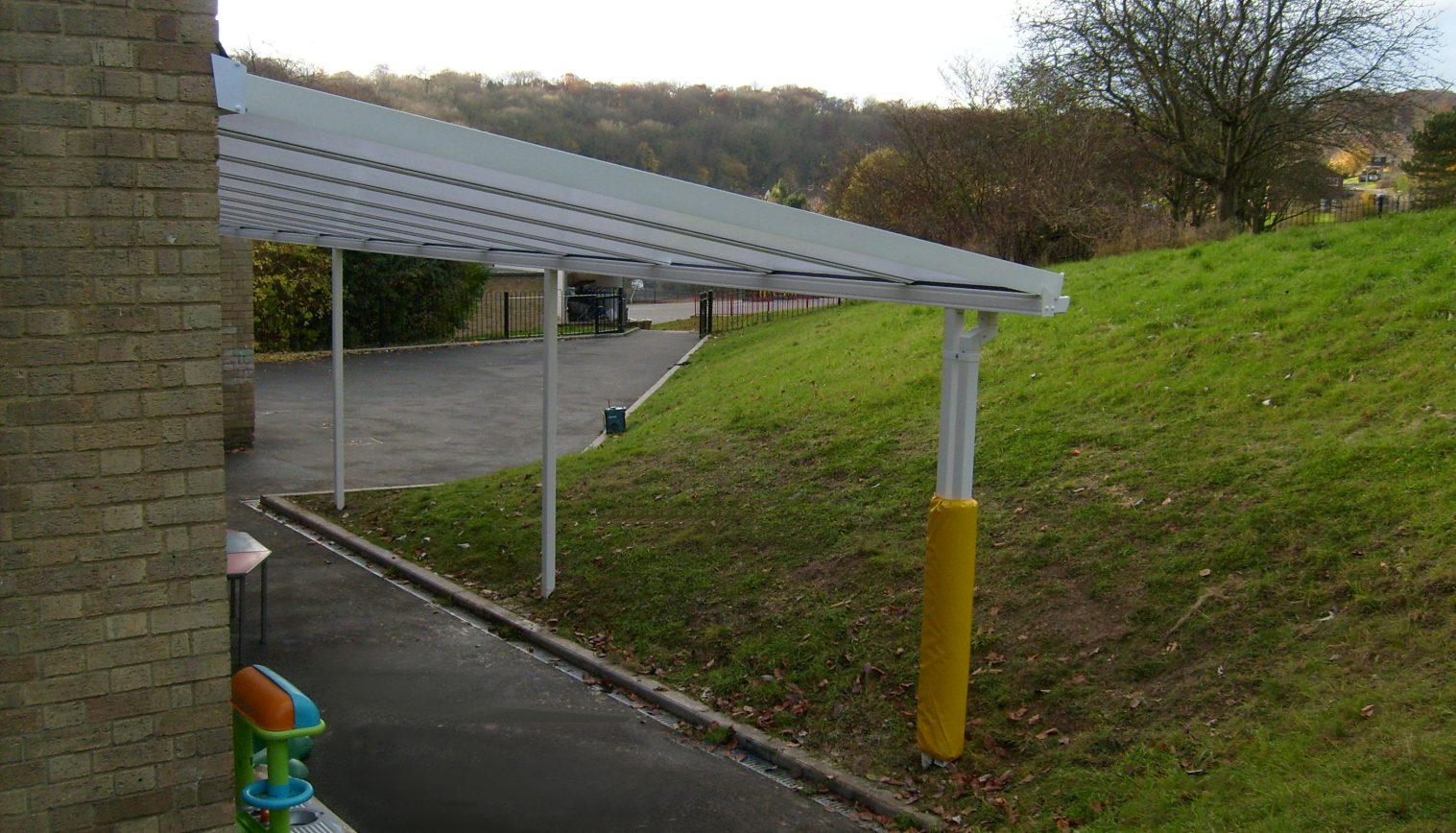 Ash Hill Primary School required cover of their playground to provide their pupils with protection from downpours and UV rays. We installed a 11m x 3.5m Coniston which was fixed to both the back and side wall, and featured 3 posts. The Coniston is very popular with schools as it offers very effective protection at a competitive price, and comes with a 10 year guarantee.