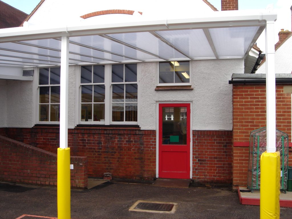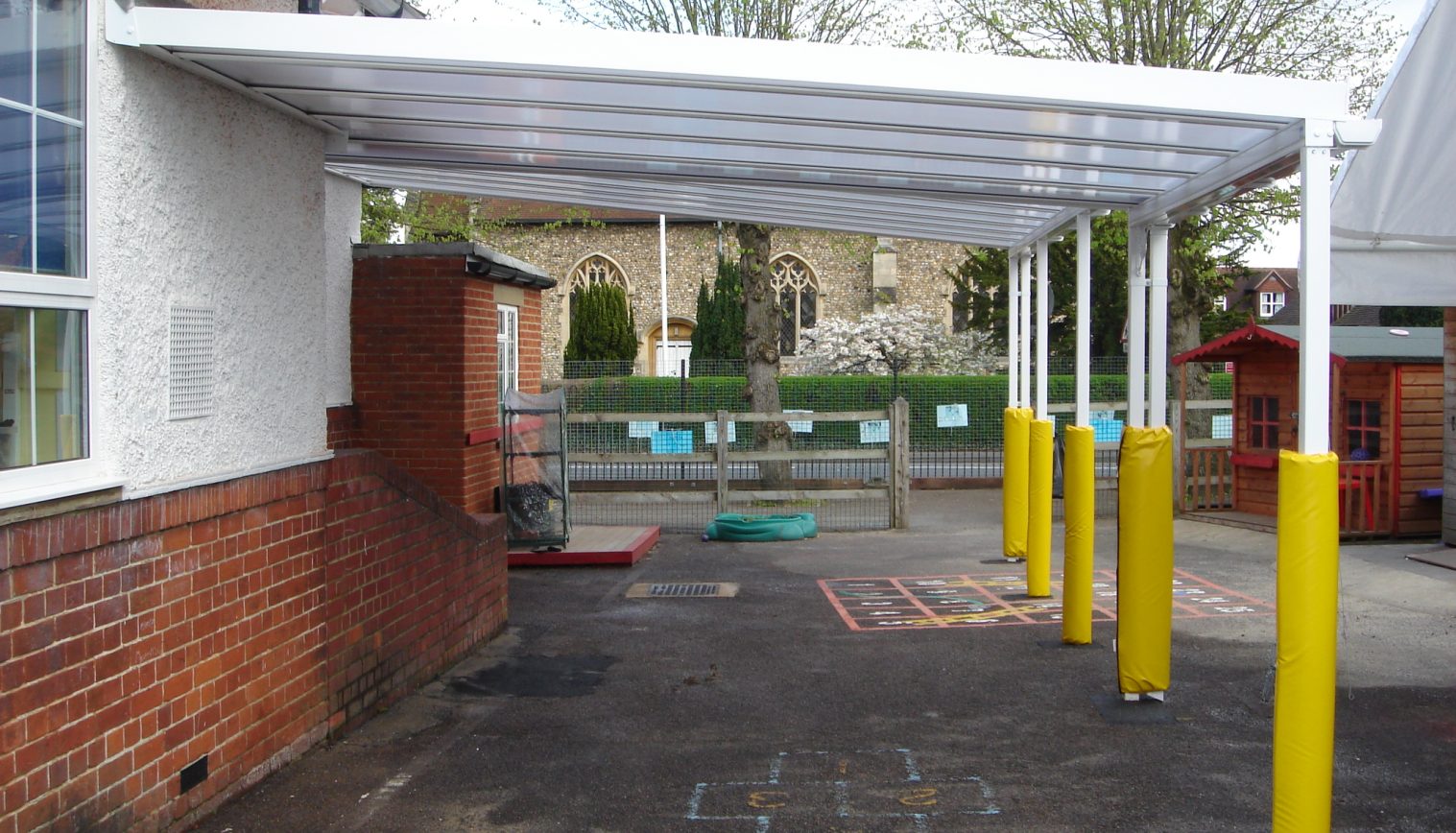 In 2006, we installed an 8.7m x 5.4m Coniston Wall Mounted Canopy at Badshot Lea Village Infant School to their playground creating an outdoor play and learning area that can be used throughout the year because they create brilliant weather protection. The school was very satified with the finished structure.