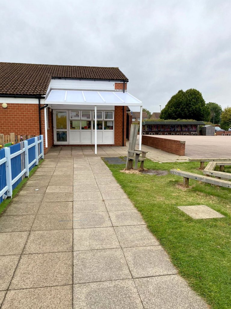 Our fitting team installed 5 no Coniston Wall Mounted Canopies at Beaudesert Lower School in Leighton Buzzard, Bedfordshire. Providing permanent covered areas to their school grounds allowing the pupils to use the outdoor space all year round whilst being protection from the different weather conditions.