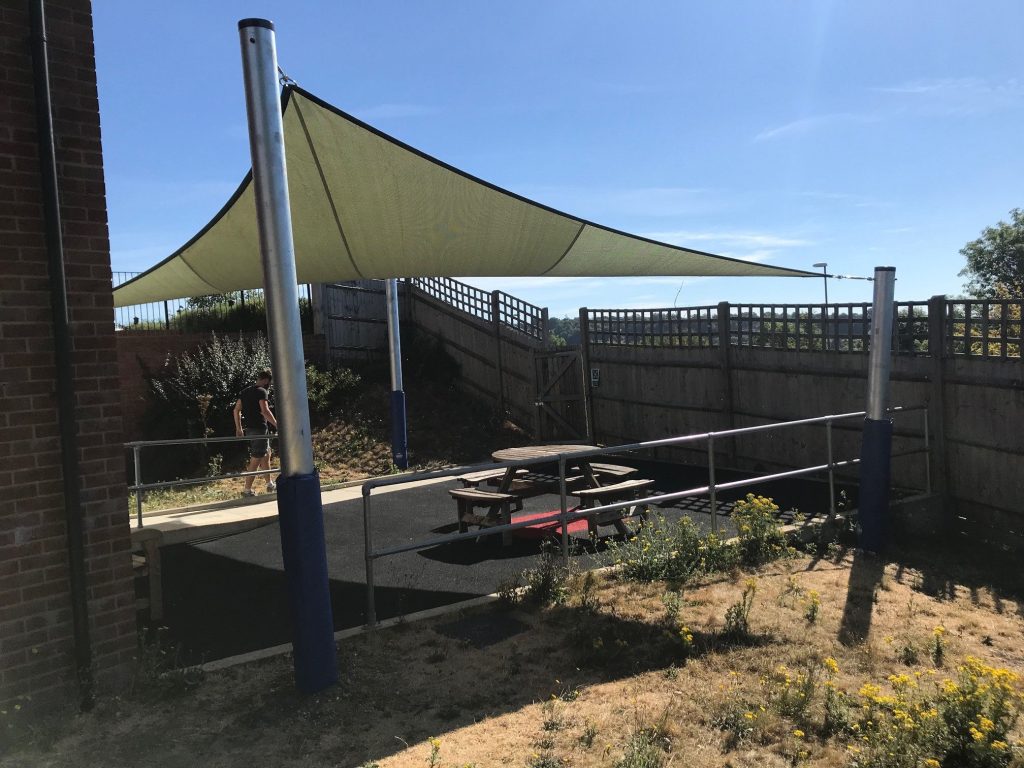 To meet the requirements, we supplied and installed a 5m x 6m x 7m x 5m Shade Sail covering the outdoor space allowing the children to use to outdoors and be protected from the sun’s UV rays.