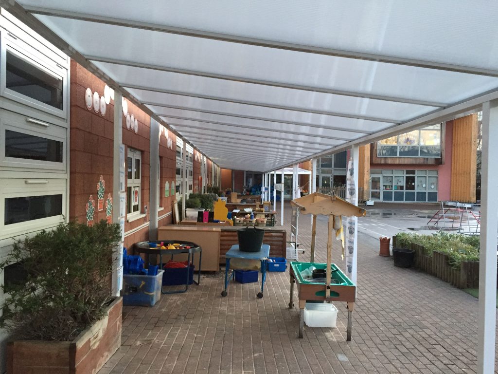 In November 2015 we installed a 34.5m x 3.1m & 6.42m x 4m Coniston Wall Mounted Canopy at Ben Jonson Primary School creating cover to an outside play area allowing the pupils to enjoy the outdoors in all different weather conditions due to the excellent coverage.