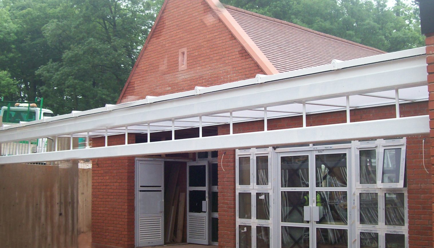 YMB Boon Contractors was working on a project for Berkswell C of E Primary School and required a bespoke canopy similar to the Coniston Wall Mounted Canopy. The school were having an extension built for a new nursery, and they needed a structure to cover the proposed play area.To meet the contractors needs we installed a 10.7m x 3.5m Bespoke Canopy at Berkswell C of E Primary School in Coventry.