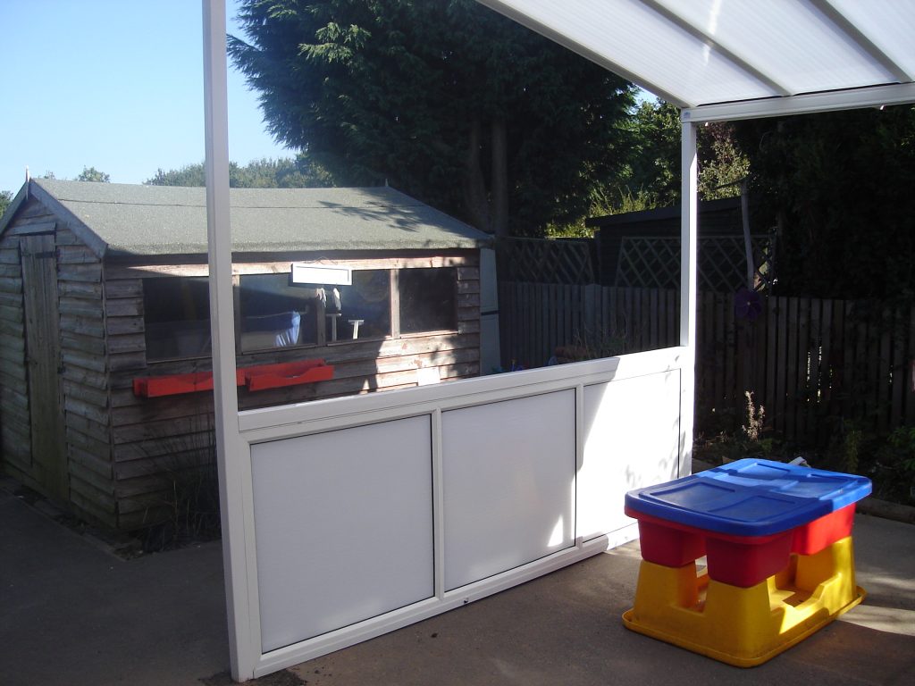 Blean Primary School contacted us as they wanted us to install a structure outside one of their school rooms creating a covered play area. We installed an 11m x 5.4m Coniston Wall Mounted Canopy with a side fill as the school required a section of the canopy to be screened off.