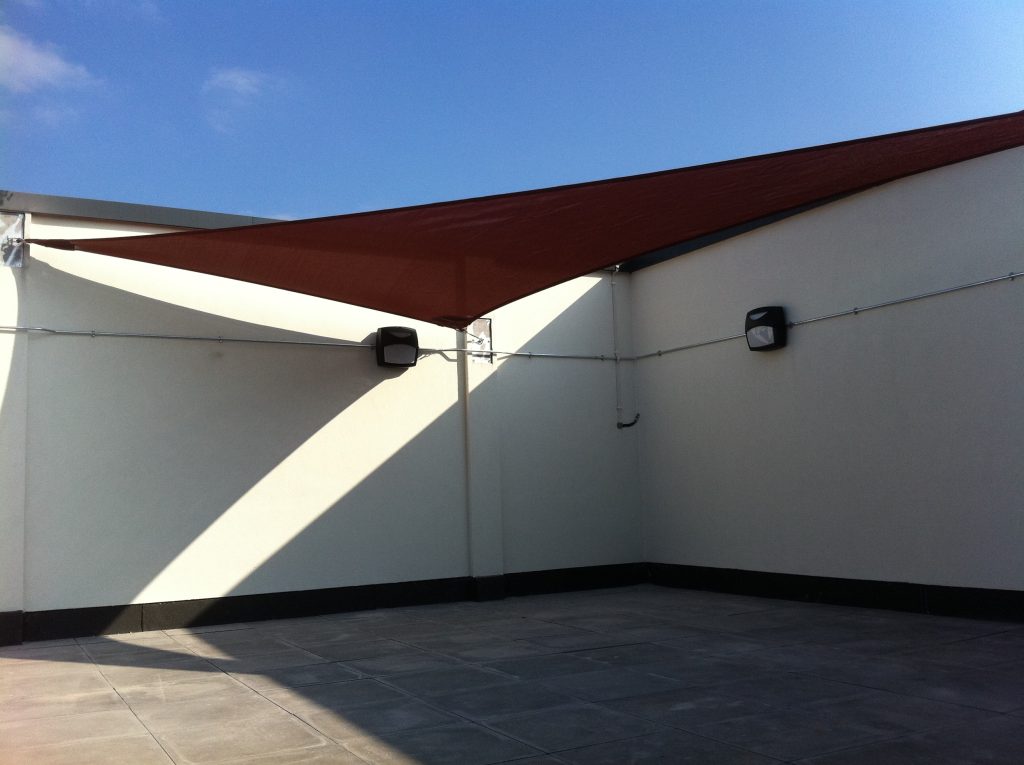 Bordesley Green Girl’s School contacted us wanting us to create a shaded area within a corner of their playground. To meet the school’s requirements in March 2011 we installed a 6m x 3.8m x 8m Burgundy Red Shade Sail because the Sail blocks out up to 98.8% of the UV rays.