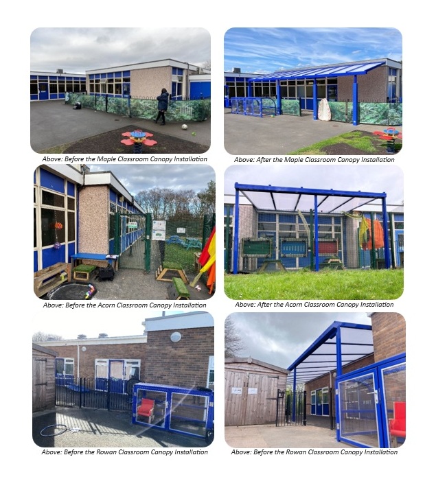 Initially, the school contacted us in December 2024, as they were looking to provide shade and shelter outside their Acorn, Maple, and Rowan classrooms.