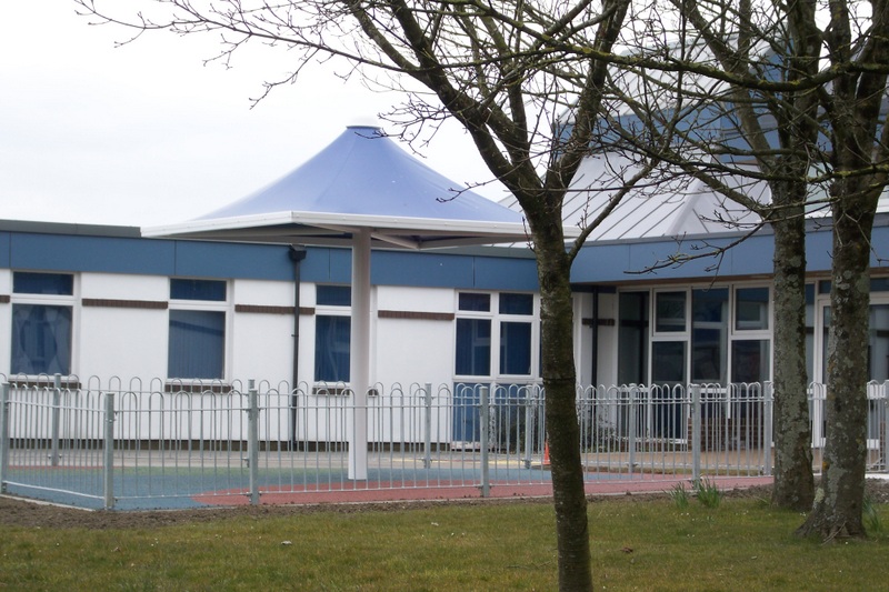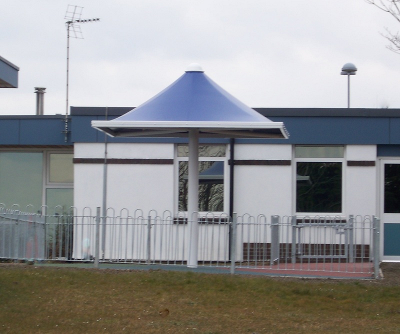 Our installation team, installed a 3m x 3m Dallington Free Standing Umbrella at Brackla Primary School. The school decided to colour the fabric of the structure Night Blue and the framework white to match the other surroundings.